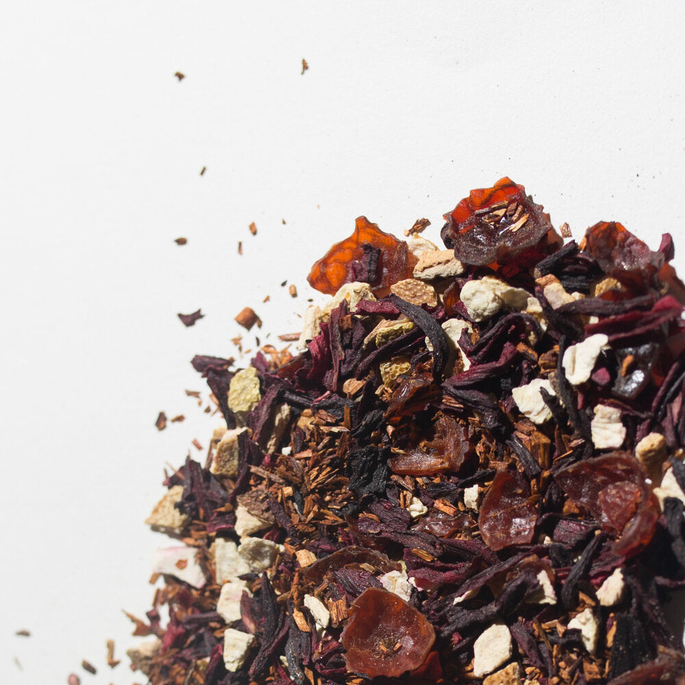 We typically start with a general flavor profile and/or a feeling we want to achieve. From there, we decide which type of tea (black, green, etc.) would be the best base for the tea, and build from there. We sample tons of options before landing on our final blends. We also work with a specialty tea importer who ensures the producers at origin are well paid.