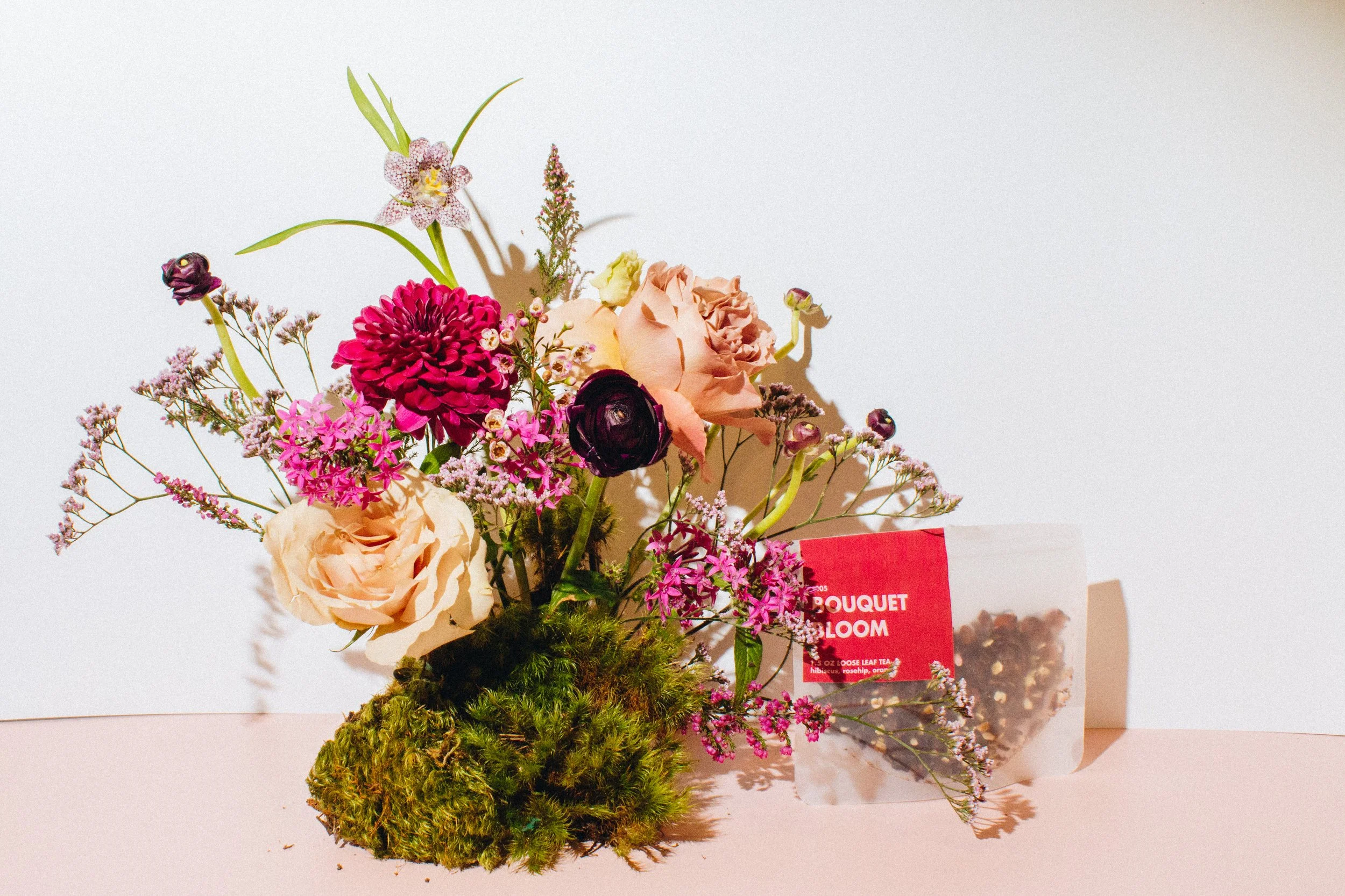 Our favorite local flower shop started selling our tea! Flowers and tea just make a ton of sense, so I wanted to see if Bloom was up for a little creative challenge!